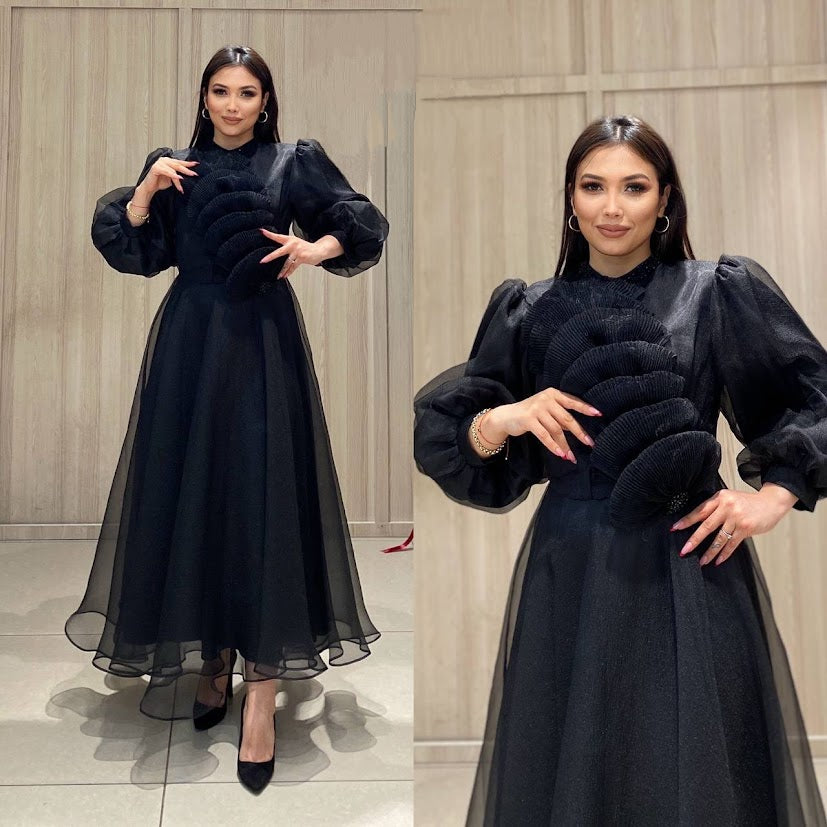 Queen's Black Dress with Organza